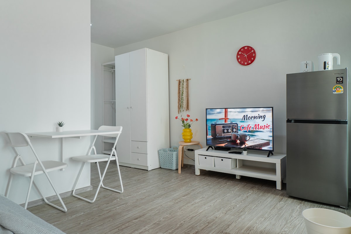 Cozy one bed room apartment with city view in the Northern part of Bangkok. Authentic Thai neighborhood. MRT (subway) Bangson is 350m away. So it's still pretty easy to get connected to downtown. Free high speed Wifi. Facilities include swimming pool, gym, garden, common room and children playground. 适合家庭.