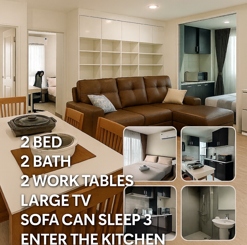 Welcome to ThaiphilCondo, your perfect urban retreat that combines modern convenience with luxurious comfort. Our fully furnished 2-bedroom, 2-bathroom unit is thoughtfully designed to provide you with a serene and stylish living experience. Here’s what sets our unit apart: *Fast Internet Connections/WIFI *Huge Samsung Refrigerator *60 Inches Smart TV *Samsung Microwave Oven * Samsung Automatic Washing Machine *Tabletop Induction Stove *Rice Cooker * Electric Kettle * Swimming Pool