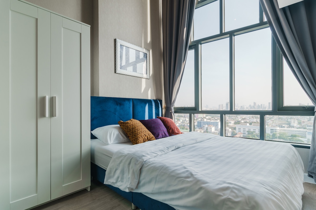 A Spectacular Cozy condominium next to Chao Phraya River a very high floor with a view of Bangkok skyline from bed and patio .. There are lot of sunlight comes in the room through out the day with lot of energy and good vibes 🤍 Facilities upto 3 huge swimming pools with the signature infinity sky pool on 56th floor with stunning river and sunset view, there is a clubhouse with games room, Co-working space infront of river as well with 360 degree view of Bangkok :)