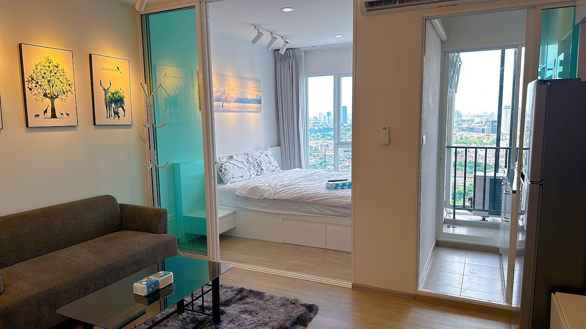迷人的单卧室房源,步行 5 分钟即可抵达地铁站,靠近廊曼机场(DMK)、乍都乍(Chatuchak)