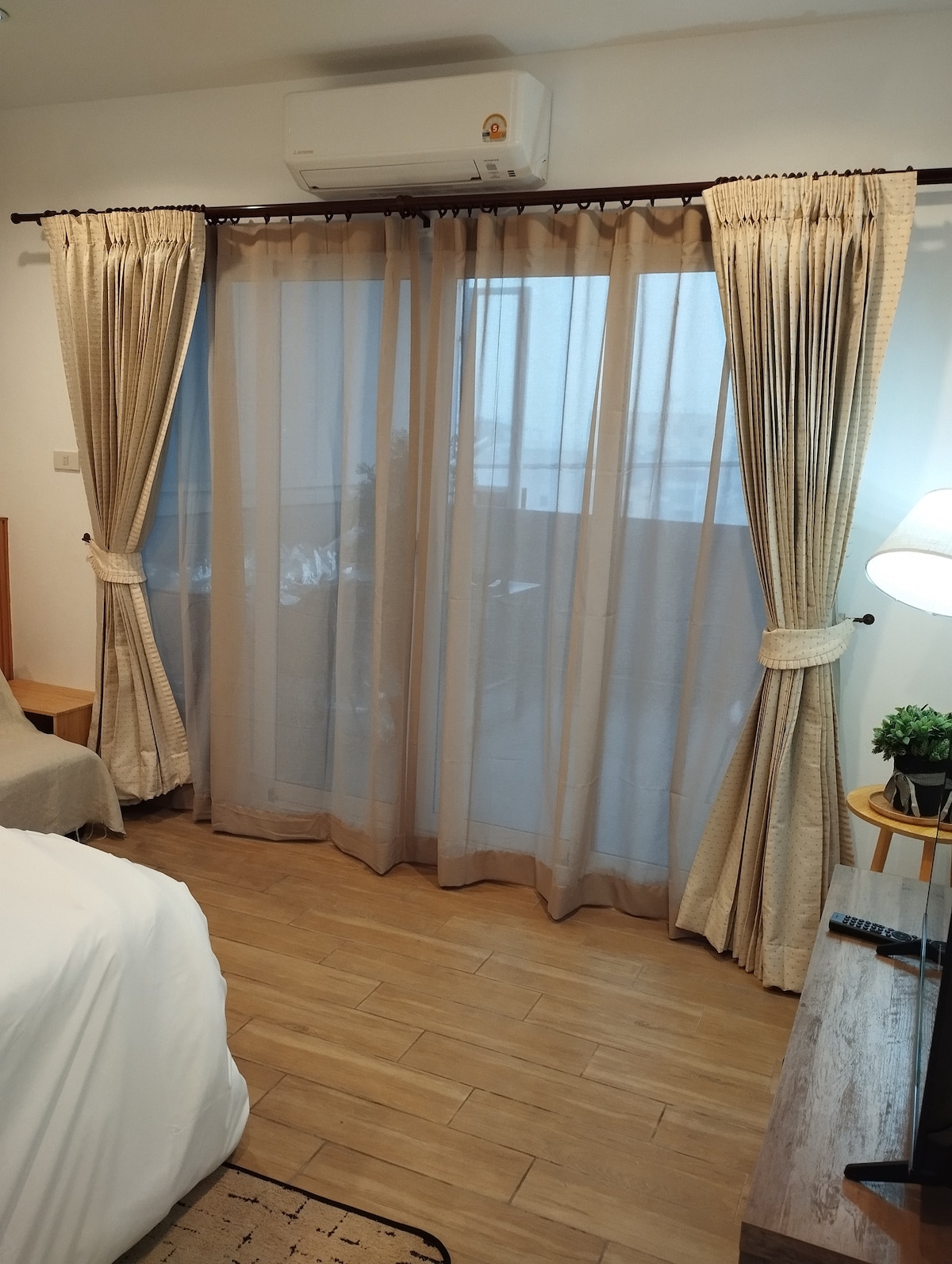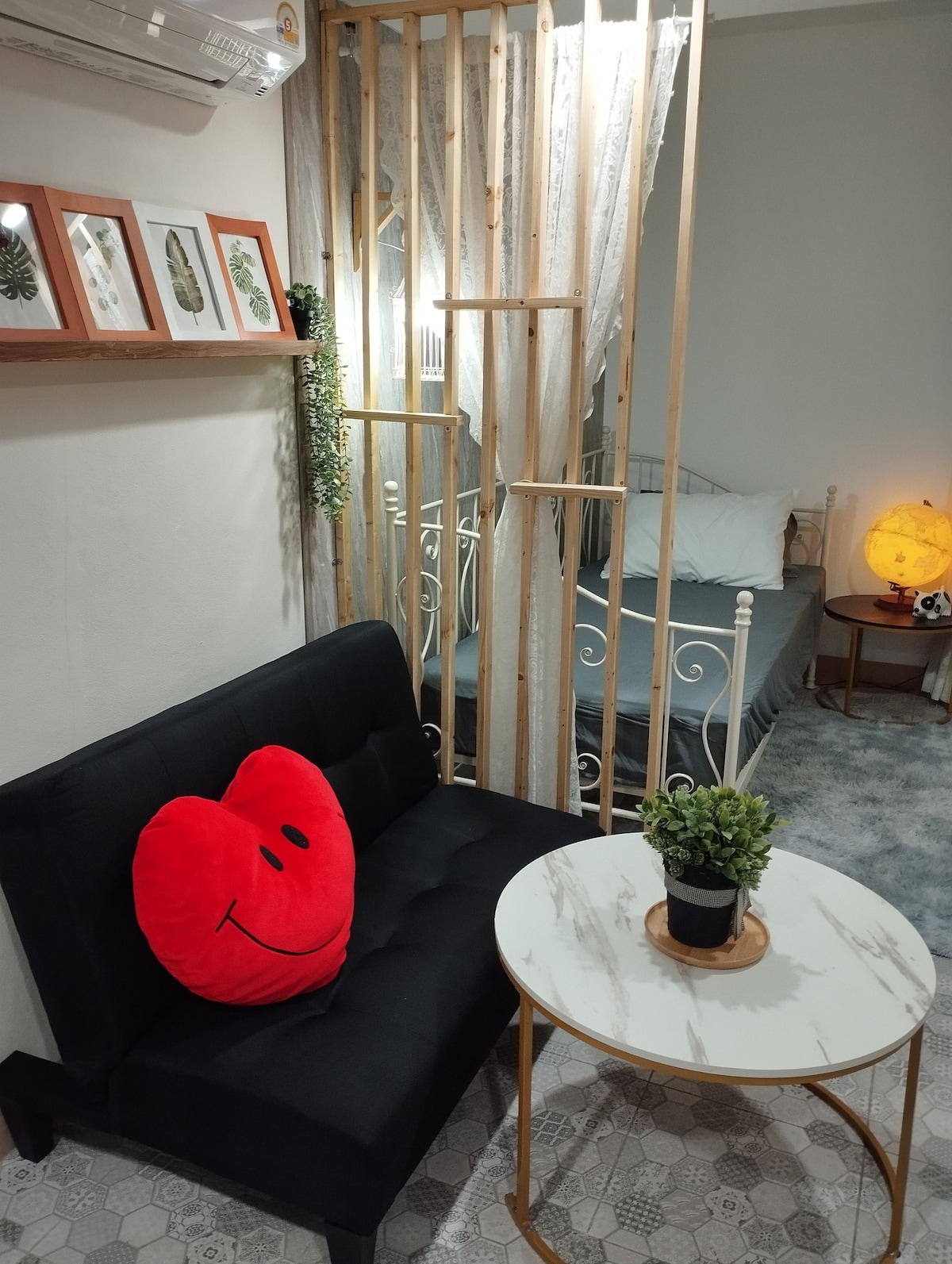 ทีพักเป็นห้อง1ห้องนอน มีแบ่งโซนรับแขกมีอุปกรณ์พร้อมใช้ อาทิเช่น ตู้เย็น แอร์ ทีวี ไมโครเวฟ หม้อหุงข้าว เตียง ที่นอน โซฟาเบดสำหรับดูทีวี เครื่องทำน้ำอุ่น ซิงค์ล้างจาน เตารีดไอน้ำ เครื่องดูดฝุ่น ไดรเป่าผม หม้อต้มสุกี้ และโถปั่นอาหาร เคาร์เตอร์เก็บของพร้อมชั้นใส่เก็บของ ที่ใส่รองเท้า ชั้นโชว์ กล่องไวไฟ ม่านพร้อมฉากกระจกกั้นห้อง ชุดจาน ชาม มีด และเครื่องนอนผ้าปูที่นอน หมอน ผ้าห่ม WiFi : sorawis Password: 12345678