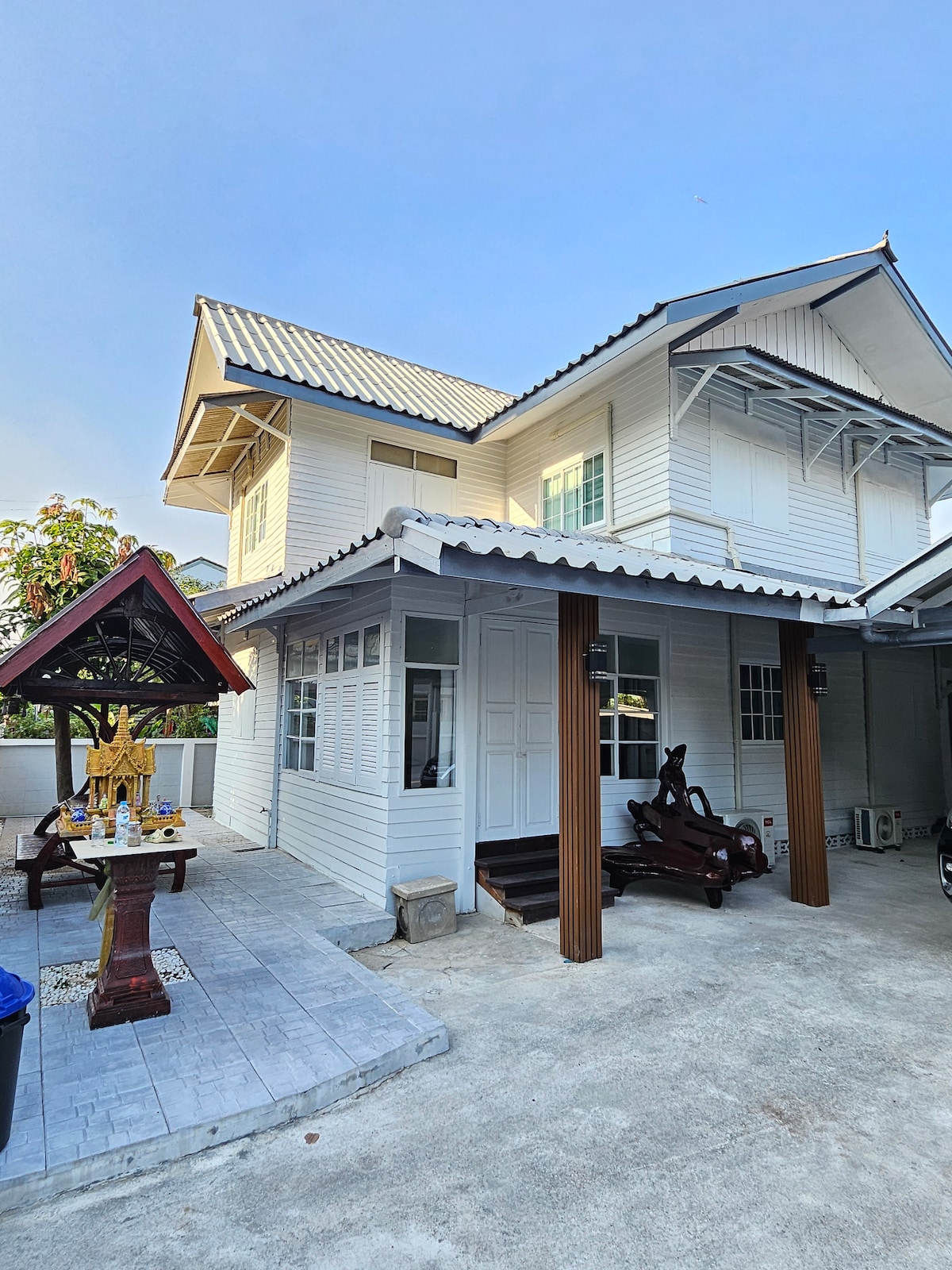 Our house is peaceful and shady, with green space around the house, a playground, suitable for families or all ages, with working areas both inside and outside the room, complete with electrical appliances, parking space and an outdoor activity area such as picnics and badminton. 7 minutes by car from The mall Ngamwongwan,BTS Khae Rai(pink line), Esplanade Department Store,Lotus Department Store. From here you can take BTS to Chatuchak,Victory Monument,Siam Station conveniently.