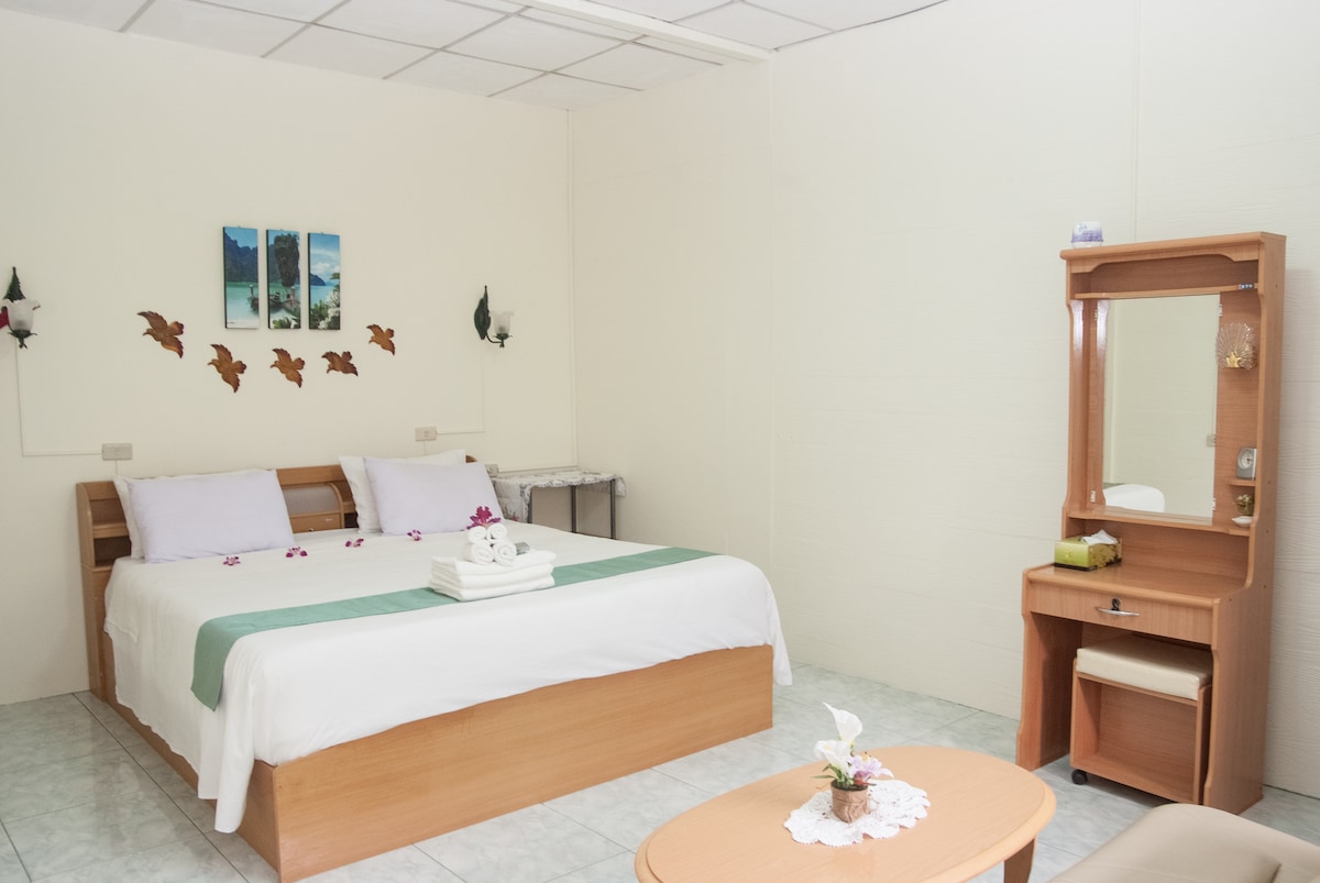and comfortable place to spend your vacation. The room is furnished with a king-size bed, private restroom, chairs and table, digital TV, hairdryer, and free Wi-Fi. Located in the outskirts of Bangkok, the property is situated in a very private and friendly neighborhood. The nearest sky train redline (connecting to Don Mueang Airport) is 1.3 km away, and the green line (connecting to the center of Bangkok) is 3.5 km away.