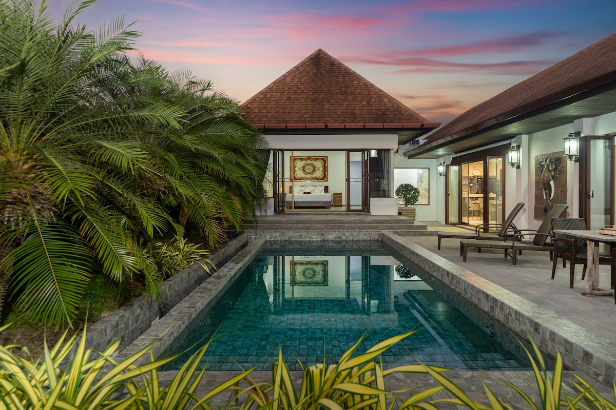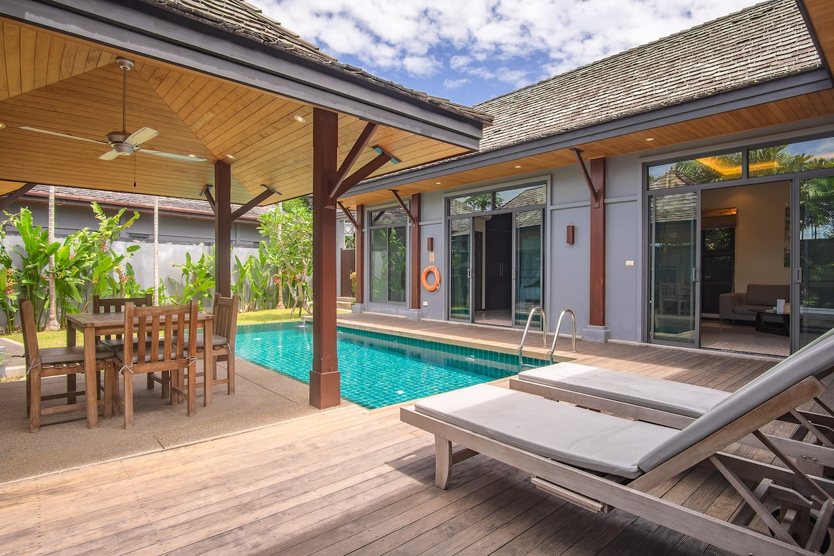 Villa de luxe au design moderne avec piscine privative, parfaitement adaptée à votre séjour en famille ou entre amis. Située dans un quartier paisible, proche de toutes commodités, et des plages de Rawai et Naiharn, cette somptueuse villa dispose d'une piscine entièrement recouverte de marbre, et dotée d'un systeme de filtration à eau salée. A l'intérieur, vous disposerez de 140 m2 repartis en un grand salon ouvert sur une cuisine toute équipée, ainsi que 3 chambres avec salle de bain privée.