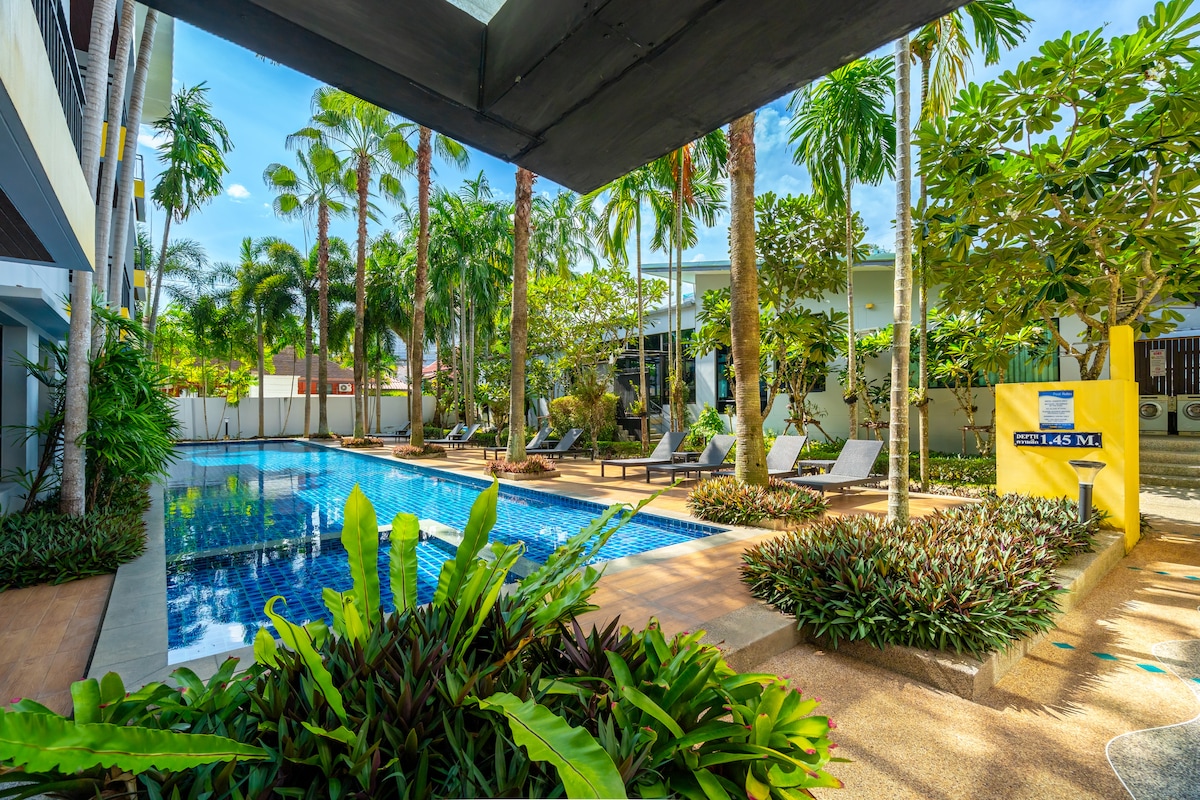 Modern 36 square meter apartment on the 4th floor with a view of the pool and palm trees in The Title V ✅ All inclusive. No hidden fees. Utilities are included in the price. ✅Just 5 minutes by car to the beaches of Nai Harn and Yanui. Cafes, restaurants, supermarkets and co-working spaces are within walking distance. ✅Enjoy life in a complex with 3 swimming pools, a hammam, a modern gym and its own parking. You do not have to go anywhere for a full rest!