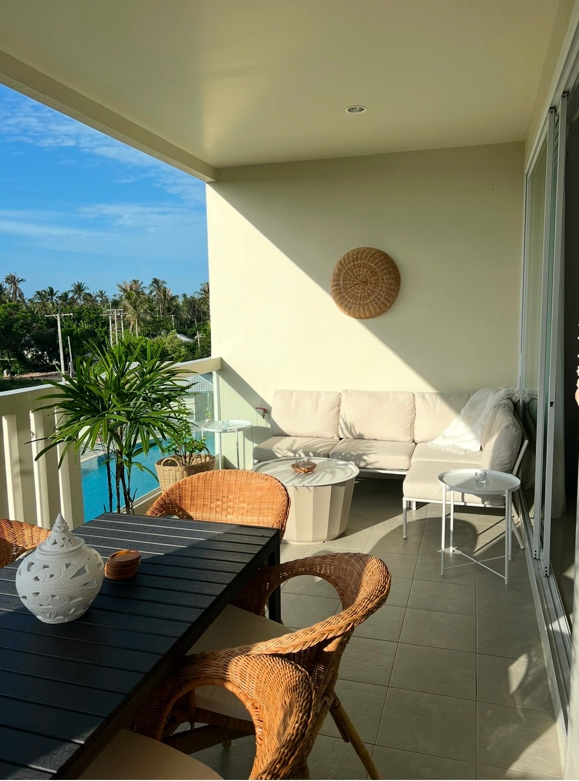 Our townhouse is situated in a quiet tropical village a few minute walk from the beach. Fully renovated in April 2023 it features modern design, thought-out layout, 2 new air-conditioners and hand-painted murals that will make your photos pop! In 60 sqm there is living room with smart TV, designated working desk, fully equipped kitchen with microwave, oven and coffee machine, dining zone, bedroom with new king mattress, bathroom with rain shower, balcony. In front of the house is a loop pool.