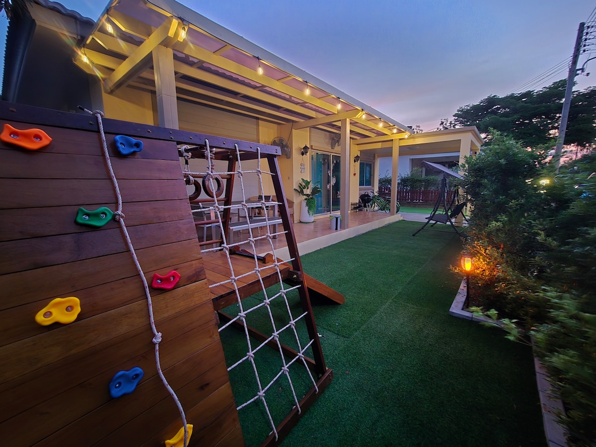 ยกกันมาทั้งครอบครัวเลย ที่พักดีๆ มีที่ให้เล่นสนุกมากมาย สระว่ายน้ำ สไลด์เดอร์ ขนาดใหญ่ คาราโอเกะ และ ห้องซาวน่าถึง 2 ห้อง มีครัว และโซนปิ้งย่าง ให้อีกด้วย มีสถานที่ทานอาหารข้างสระน้ำด้วย