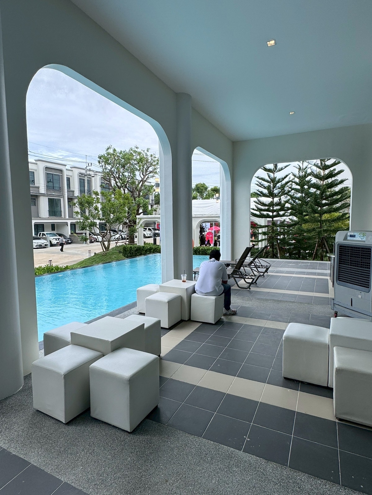 Cozy and comfortable—ideal for travelers seeking a relaxing pause between city adventures. Located in Sukhumvit 72, just a short walk from BTS Bearing, the area is quiet yet convenient, with 7-Eleven, cafés, local eateries, and a lively night market with affordable food and live music Imperial Samrong Mall is one BTS stop away, with a local fresh market nearby. Amenities include a swimming pool, shared areas, 50/20 Mbps internet, plus access to the kitchen and washing machine.