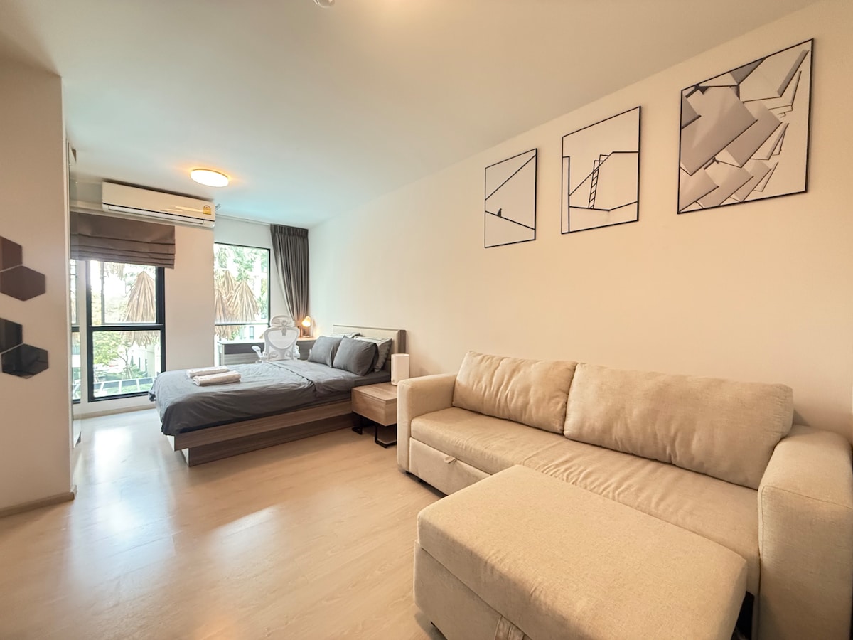 AM01:曼谷泳池公寓/溫馨雙人房/BTS Bang na/免費WiFI&泳池&健身房&藍球場