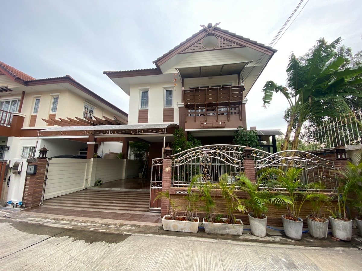 This is a fully equipped house. The rate is the BEST in Bangkok. You get the whole house except the bedroom, which will be accommodated according to the number of guests booked. - 3 king-sized beds, 1 queen-sized bed and 2 sofa beds. - It is located less than 700 meters from the MRT Yellow Metro, which easily connects to other Metros in all parts of Bangkok. - A peaceful, clean, and green community in the heart of eastern Bangkok. - Gated with 24 hr security.