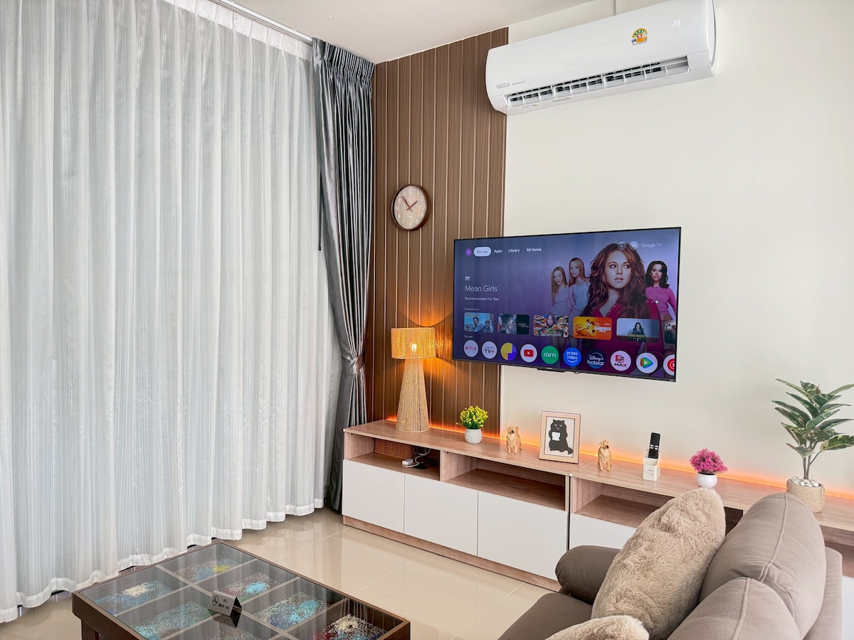 Japanese-Minimalist 2-Story Townhouse with Mountain View Spacious, clean, and cozy, furnished in a Japanese-inspired minimalist style for a calm, home-like stay. 🌳 Peaceful setting near the park with Koh Hong mountain view. ✅ 2 AC bedrooms & AC living/dining area ✅ 3 bathrooms with hot showers (1 downstairs, 2 upstairs) ✅ Private parking for 3 cars (1 inside, 2 in a private garage) – 24/7 access, gated & covered The house has access to Grab and Tuk-Tuk services.