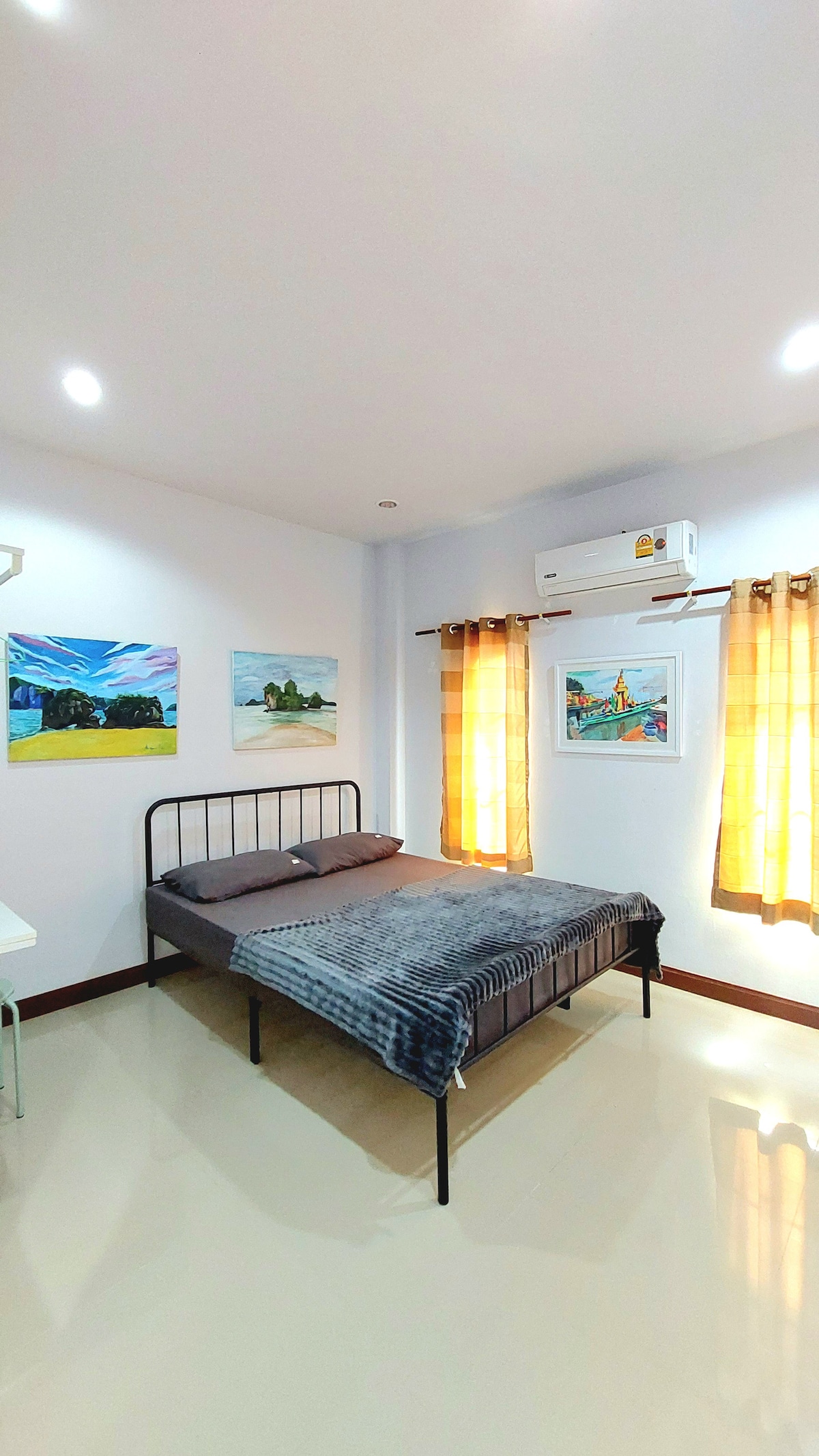 Room in Surat Thani, Thailand safe, clean, convenniet with good location in town. we have 3 rooms in this house and this is the room number 1 is the big room with bathroom in side with A/C hot & cold shower, air condition, free wifi fiber high speed internet, bicycle, refrigerator, electric stove, micro wave in the kitchen and we also do bikes rental, art workshop & do service Thai driving license for foreigners. Map : 49P9+WR Surat Thani, Mueang Surat Thani District, Surat Thani, Thailand