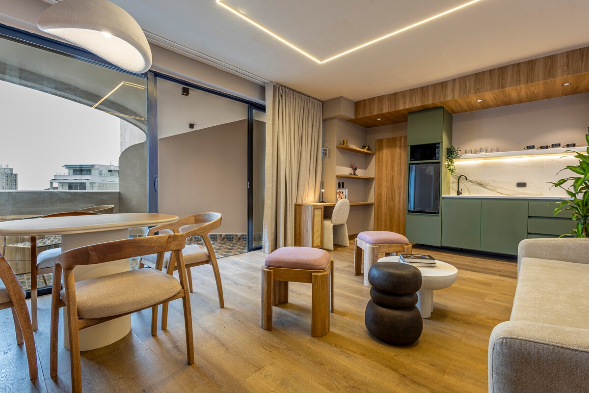 This apartment is perfect for couples looking for an exclusive place to stay, with everything within reach. It’s also suitable for older guests. The building is a residential tower located above a shopping center that has it all — supermarkets, restaurants, and stores. The apartment itself has an elegant style, thoughtfully designed down to the smallest detail. It's filled with Cartagena-inspired art and offers a spectacular view.