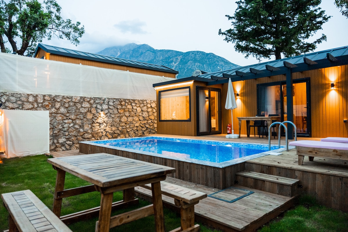 Bahçeli Özel Havuzlu Tam Korunaklı Bungalov