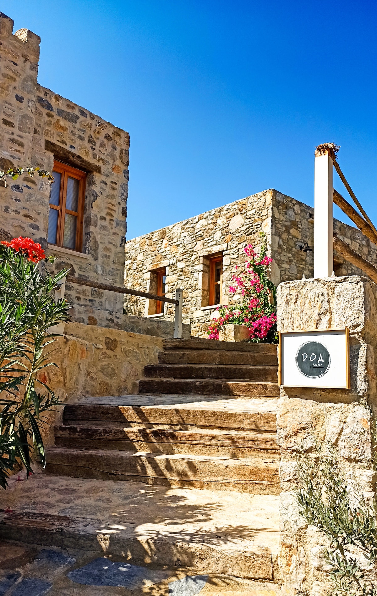 Minik birer taş ev şeklinde tasarlanmış olan 'Doa Houses' evleri ; müstakil girişli ve müstakil bahçelidir. Tarihi evler ve sokaklardan oluşan Eski Datça merkezine (restoran / cafe ve dükkanlara) yalnızca 50 mt uzaklıkta bulunmaktadır.