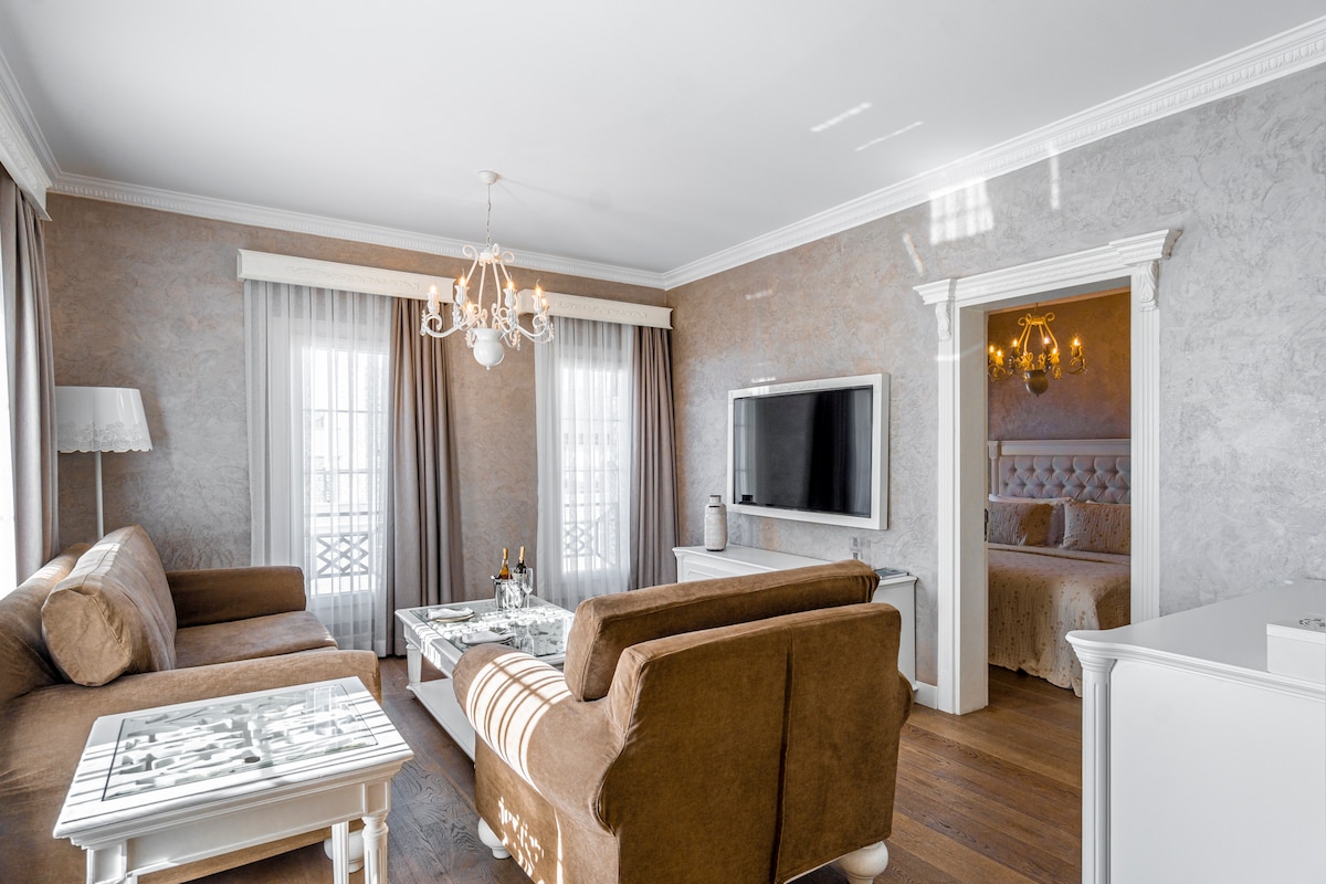 位于博德鲁姆市中心的带按摩浴缸的套房