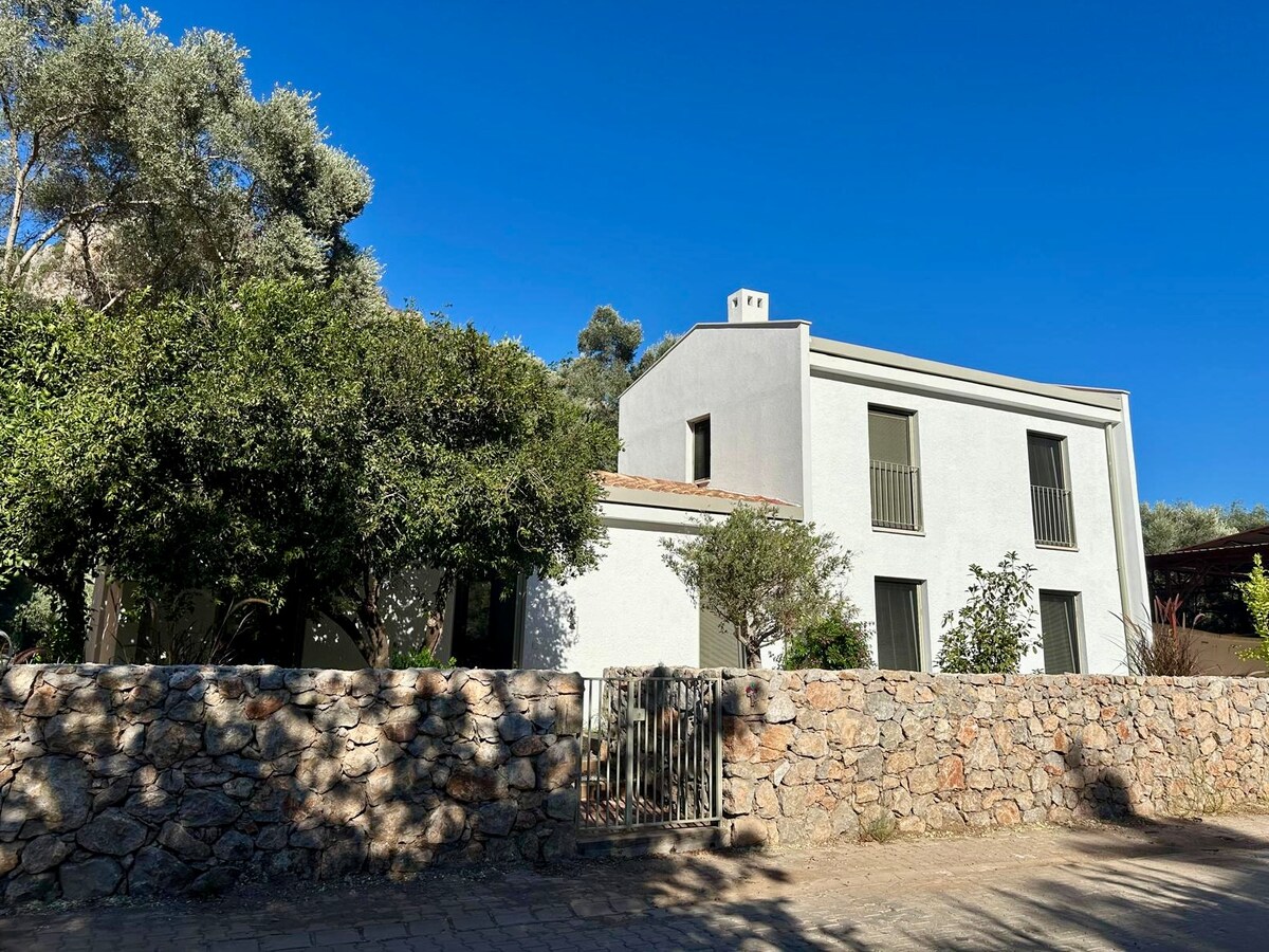 Breathtaking, Unique, tranquillent villa with fruit trees garden and panoramic seaview. fully equipped kitchen. 5 min. walk from the beach. 10 min walk from the centre and shops. 10 minutes drive from Bodrum airport. The multi level garden setting and authentic seatings at different spots within the garden is a sky high romantic experience. the villa not suitable for pets