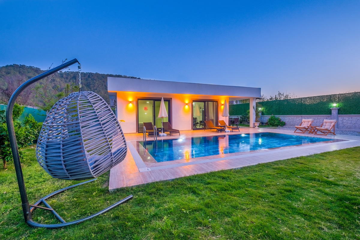 🌿 Doğayla iç içe Fethiye'de, sadece size özel bir tatil… Villa Yaman Exclusive, Fethiye’nin huzurlu atmosferinde konumlanan 1+1 loft konseptli, iki kişilik, modern ve romantik bir kaçış noktasıdır. Balayı çiftleri ve özel anlarını unutulmaz kılmak isteyenler için tasarlandı. Şehir gürültüsünden uzakta ama tüm olanaklara yakın konumda bulunan villamız, modern iç mimarisi, farklı tasarımı, size özel havuz ve havuz içi jakuzi, gün boyu dinlenmeniz ve birlikte keyifli anlar yaşamanız için hazır.