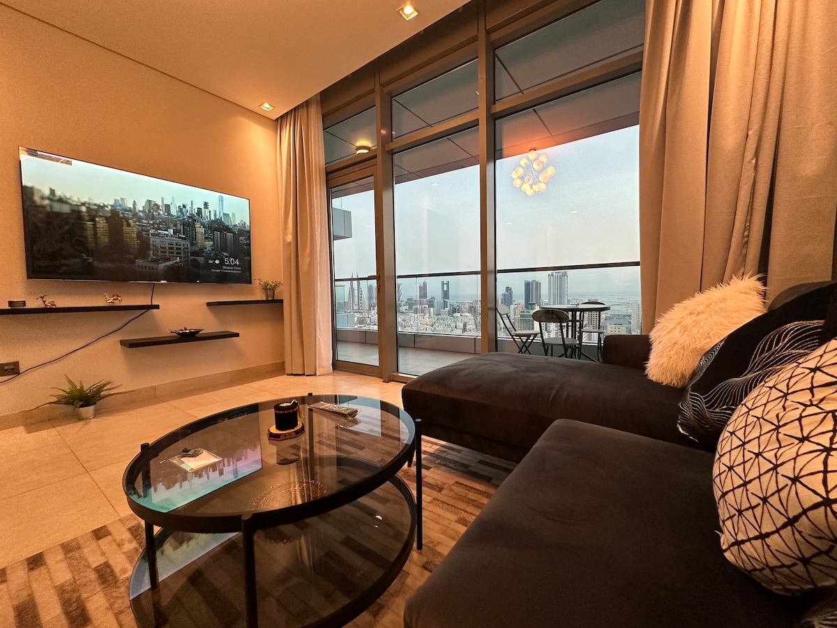 Welcome to your luxurious retreat in the heart of Bahrain! Perched on the 24th floor of a modern high-rise, this 1-bedroom apartment offers spectacular views of the city skyline. Designed for comfort and style, our family home features contemporary furnishings, a fully equipped kitchen, and all the amenities you need for a relaxing stay! Wake up to stunning vistas, unwind in the spacious living area, and enjoy our Smart Home System, Using Alexa to adjust and modify curtains, TV and door lock!