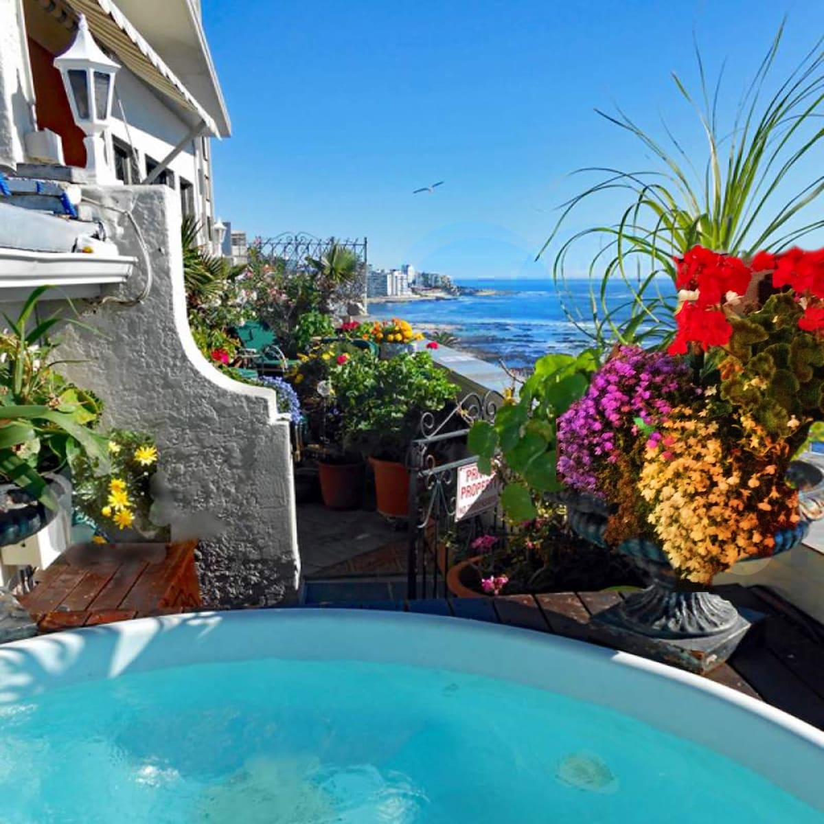 On your deck is tumbling waters of the private infinity pool looking towards the distant horizon of the Atlantic, the Terrace Honeymoon Suite is perfect for that special occasion celebration. Jacuzzi bath, gas fire plus fabulous indoor/outdoor living. DSTV with SuperSport, Wifi, BBQ. African Violet is 10 minutes drive to beaches of your choice, and close to Boulder's penguins, Cape Point, Table Mountain, V&A Waterfront, wine routes, shops, banks, top restaurants, quaint working-harbours etc There is a private entrance to this apartment. The setting is really special, as the view over the infinity pool, of the ocean is framed by greenery. There is indoor/outdoor living for summer and a fire-place for the chill of winter nights. Off street parking is provided We are here is assist with any queries, plans for the day, restaurant reservations etc. The home is located in a quiet neighbourhood close to beaches, Boulder's penguins, Cape Point, Table Mountain, V&A Waterfront, shopping, wine routes, award-winning restaurants, and quaint harbours. Most guests hire a car - but recently more and more are using Uber taxi We are registered with the local paramedics organization who can assist swiftly in any medical emergency.