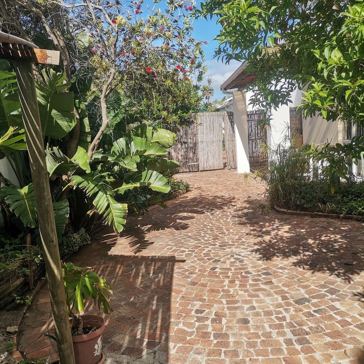 Close to the M5 and Muizenberg this room in a quiet and peaceful suburb offers you the perfect base to explore Cape Town. Waking up in nature, surrounded by birdlife, will make you think twice if you should leave home to explore more of the beautiful Cape. Marina da Gama is close to the famous surfer beach of Muizenberg , the pittoresk Kalkbay , on the way to Cape Point or the Winelands driving along the ocean beaches of False Bay. Driving to Town is uncomplicated and takes 20 min.