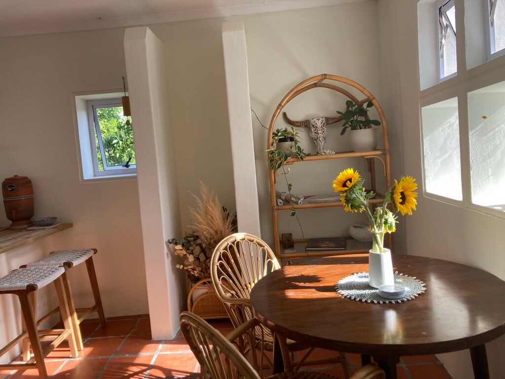 This spacious and eclectic studio apartment is perfect for working artists or digital nomads. An airy open plan living space downstairs and upstairs a large private sleeping and working floor with excellent south light and beautiful views of the mountain. A small secluded al fresco dining area and a shared tranquil garden, close to all amenities in Muizenberg with the beach just a short walk away and the bohemian buzz of the village and Mother Nature surrounds to inspire artists & troubadours.