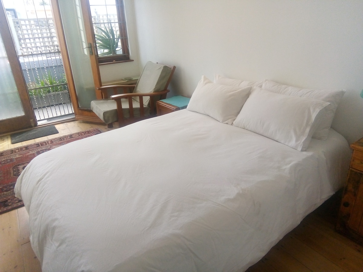 Unwind on the poolside loungers after a busy day exploring and enjoy the view of Table Mountain. This spacious modern studio looks out onto your own exclusive use luxurious private pool patio. Go for a morning stroll along the beach, just 100 meters away. Use the study desk area indoors, or the large poolside table outside on the sheltered patio to work remotely with our high speed Fiber. The studio has backup lighting, air conditioning, Netflix and your own gated parking bay.