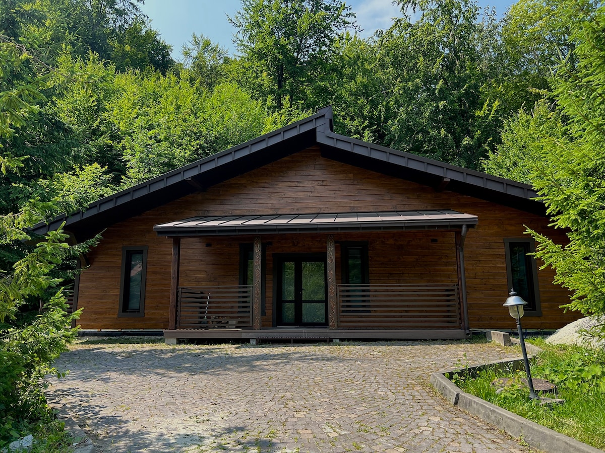 Здаються в оренду два котеджі з євро брусу, розташовані у мальовничому місці поруч із річкою. Кожен котедж вміщує до восьми осіб, та має окремі просторі тераси з яких є вихід до гірської річки. У кожному котеджі є чотири спальні, два санвузли, повністю обладнана кухня з холодильником, чайником, мікрохвильовкою та кухонною плитою. Серед зручностей помешкання варто відзначити барбекю-зону, яка оснащена широким мангалом, засобами для розпалювання вогню, шампурами, решіткою для випікання м'яса.