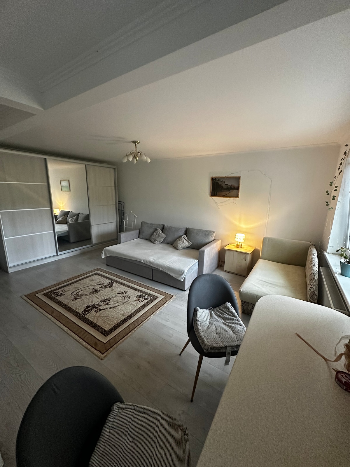 Апартаменти знаходяться в самому центрі м.Мукачево. Обладнані всім необхідним для комфортного проживання. У квартирі нові меблі та вся необхідна побутова техніка, посуд, рушники, постільна білизна, смарт TV, Wi-fi, кухня з гарним посудом і необхідним приладдям, автономне опалення, кондиціонер, пральна машинка, праска, прасувальна дошка, сушка для білизни, фен, електроплита. Поруч центральна автобусна зупинка в усі напрямки міста. Дуже зручно, якщо подорожуєте пішки без власного авто.