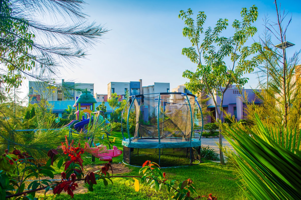 Welcome to your home away from home in one of Kampala's beautiful suburbs - Munyonyo. This modern 2-bedroom, 2-bathroom condo comfortably sleeps up to 4 guests, making it comfortable for families, couples, or anyone looking to have a gateaway. Unwind by the shared pool, let the kids enjoy the on-site play area or simply enjoy beautiful sunrises & sunsets at the roof top. Enjoy a fully equipped kitchen and fast wifi This apartment offers a perfect blend of comfort, safety & convenience.