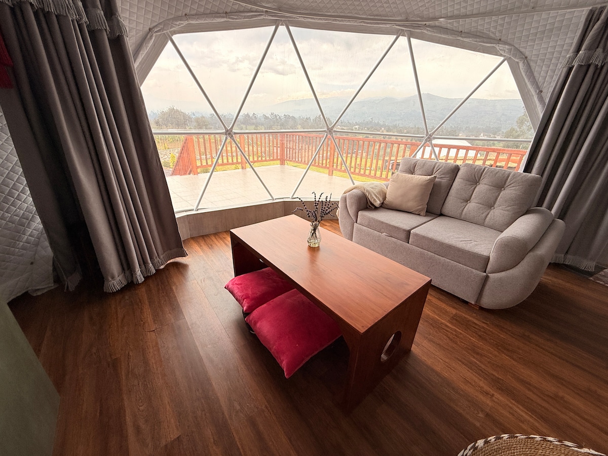 "¡Vive una experiencia única en nuestro Glamping! Alejado de la ciudad, rodeado de naturaleza y con una vista impresionante del majestuoso Cotopaxi. Nuestros domos están diseñados para ofrecerte todas las comodidades de un hogar lejos de casa, con un toque de aventura y conexión con la naturaleza. *Disfruta de:* - Un sueño cómodo y relajante en una cama acogedora - Una vista espectacular del Cotopaxi desde tu propia cama - Acceso a servicios básicos y comodidades modernas.