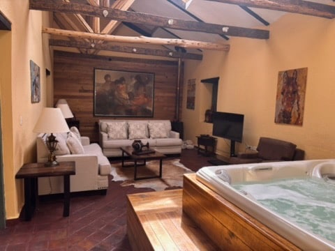 Kaya Lodge Casa Hacienda ideal para familias o amigos. La casa es totalmente equipada contiene 3 habitaciones, 2 salas de estar, 2 comedores, 1 cocina, 2 baños completos y 1 baño social. Bbq en la parte exterior con calefactores independientes y 1 Hidromasaje con una excelente vista. El alojamiento tiene wifi, agua caliente y 5 estacionamientos privados Además contamos con paseos a caballos y bebidas adicionales por un costo extra Recomendaciones: - Llevar ropa abrigada - Pantuflas