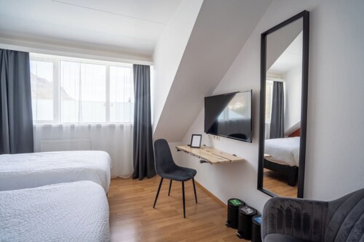 Set in the eastern coastal village of Breiddalsvík, this small hotel is just off Iceland’s Ring Road. The room features free Wi-Fi, fresh duvets, towels and comes with a flat-screen satellite TV and private bathroom. Views of the village and surrounding mountain range are provided from the room. The room has a simple décor, wooden floors and a work desk.
