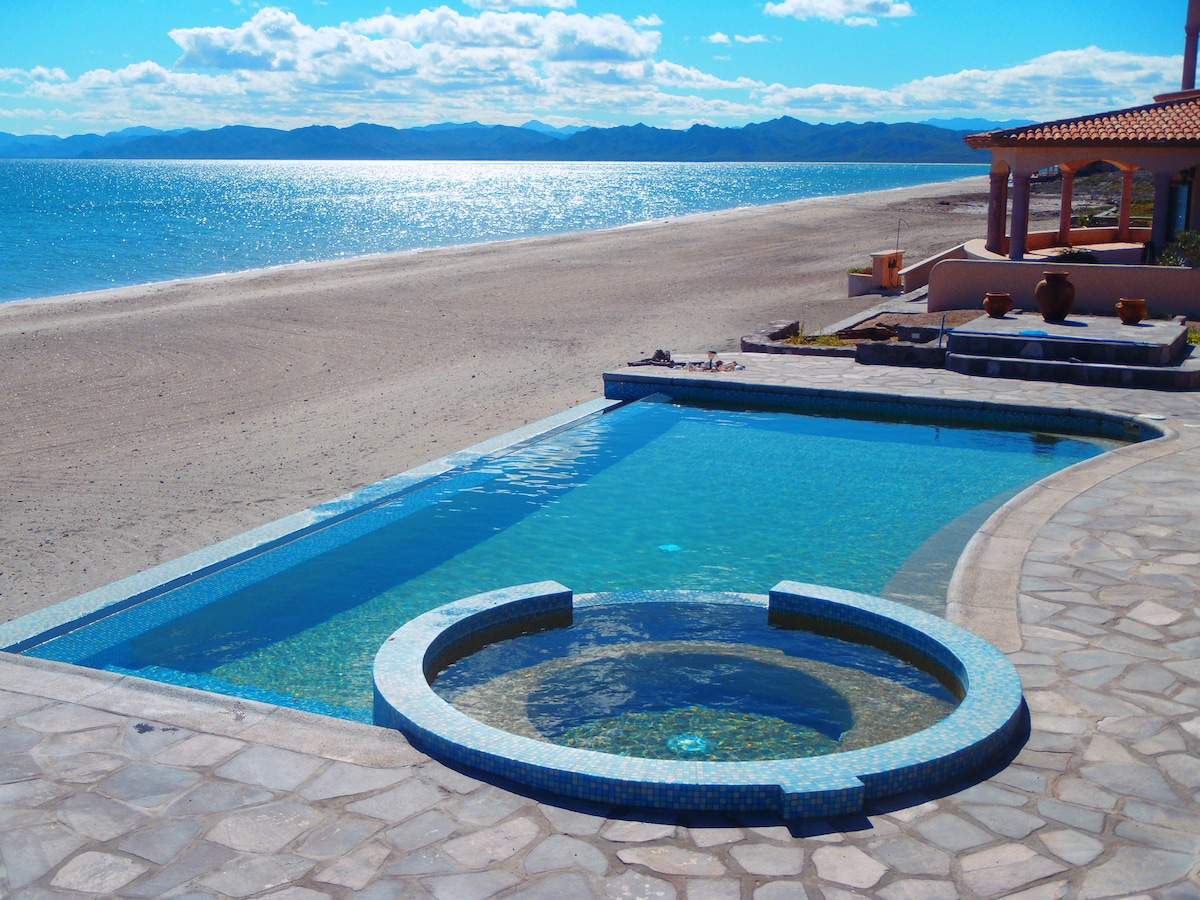 LUXURY BEACH 5 BR/5 bath, 24/7 SECURITY office w/WIFI and printer, laundry, sunken tub, A/C +++ 8000 sq. foot home — new, real stone, hardwood, and talavera tile — RIGHT ON THE BEACH in San Lucas Cove. Gorgeous outdoor BBQ &kitchen. FISHING Paradise — WHALE SHARKSCaretaker/Majordomo/Butler/Chauffeur and Housekeeper included. Canoes for rent.