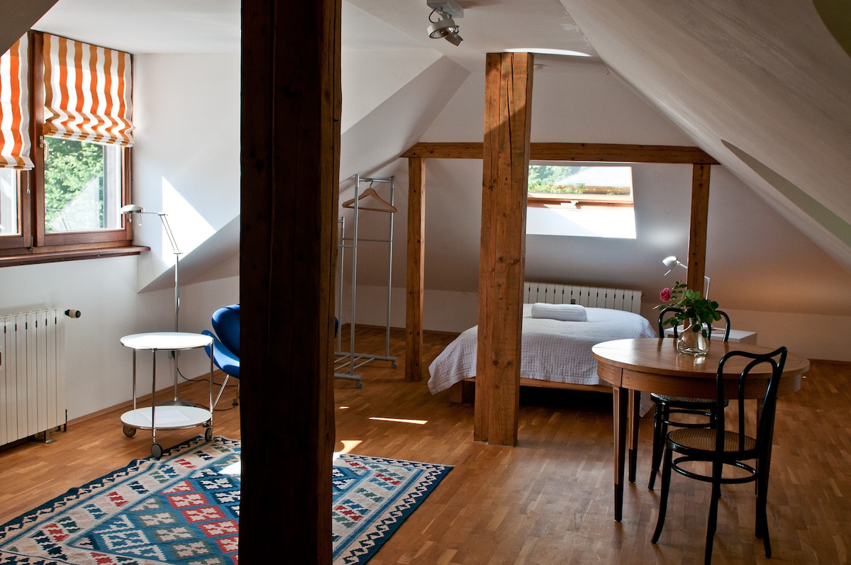 Welcome to my charming one-bedroom guest apartment, located in a beautifully designed architectural building with three units. After a thorough renovation in 2024 it is ideal for long-term business or leisure stays and accommodates up to two guests. The apartment offers a cozy bedroom with a double bed, a comfortable living room with sofa and TV (including Netflix, YouTube etc.), Sonos sound speaker, desk with monitor (HDMI), a fully equipped kitchen and bathroom.