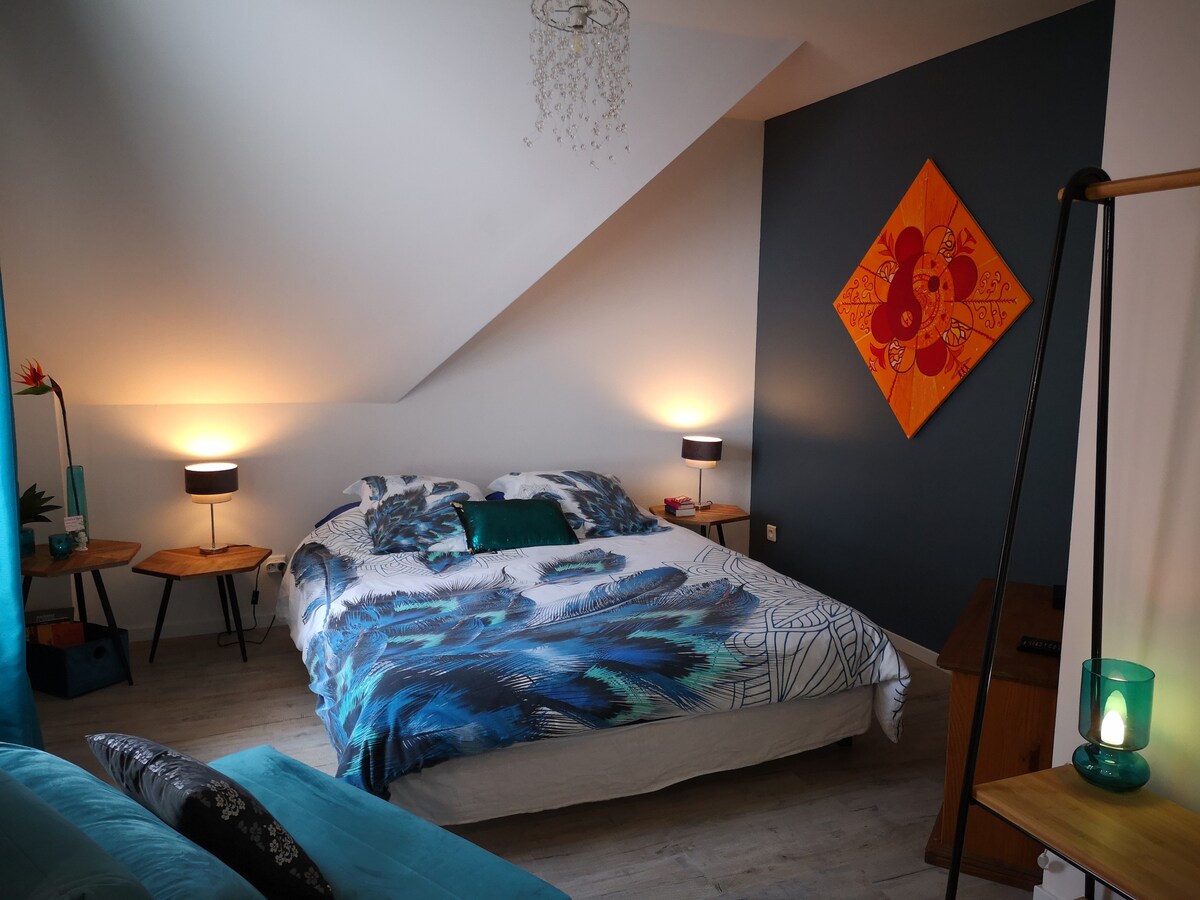 Laissez vous séduire par cette adorable chambre cocon très calme avec un petit salon équipé télévision (canal +Netflix), machine à café à disposition. Une arrière cour en travaux, construction d’une maison avec piscine et espace vert. d’ici fin 2025 et d'une magnifique terrasse à l'avant de la maison, d'un parking sécurisé non accessible pour l’instant, dans une grande maison de 70 m2 rdc et 70 m2 au 1er, au total 140 m2 de surface habitable et de 6 ares de terrain actuellement en travaux.