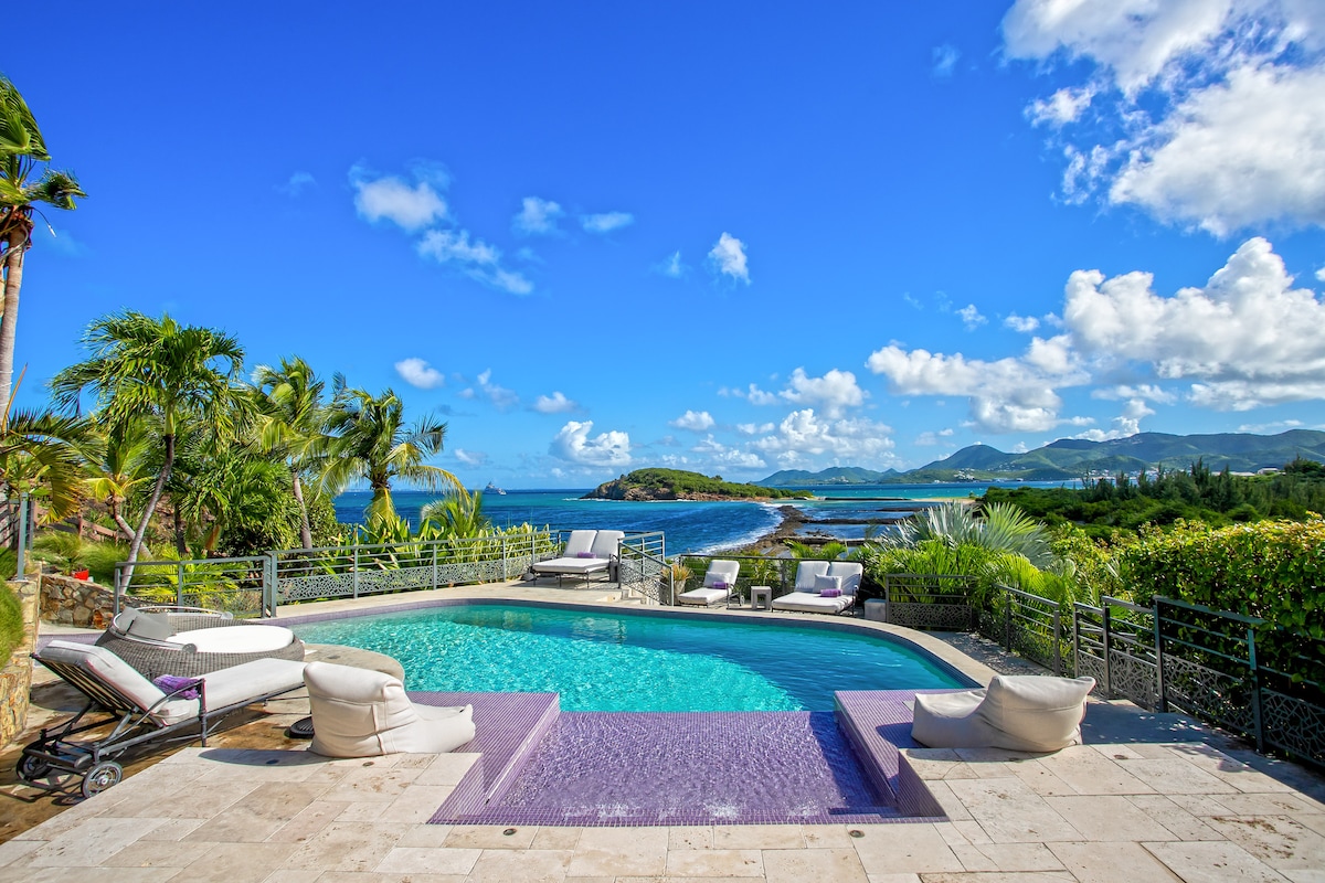 This spectacular oceanfront villa in St. Martin is located within Terrasse de Cul de Sac, within minutes of Orient Beach, Anse Beach Club, and Hope Estate. Newly renovated, the villa features a private boat dock and breathtaking views of the Caribbean Sea and Pinel Island. Ample alfresco living and dining spaces along with exquisite interiors set the stage for an unforgettable island escape, while six deluxe bedrooms (all with ensuite bathrooms) comfortably accommodate families, groups of friends, and destination wedding guests.