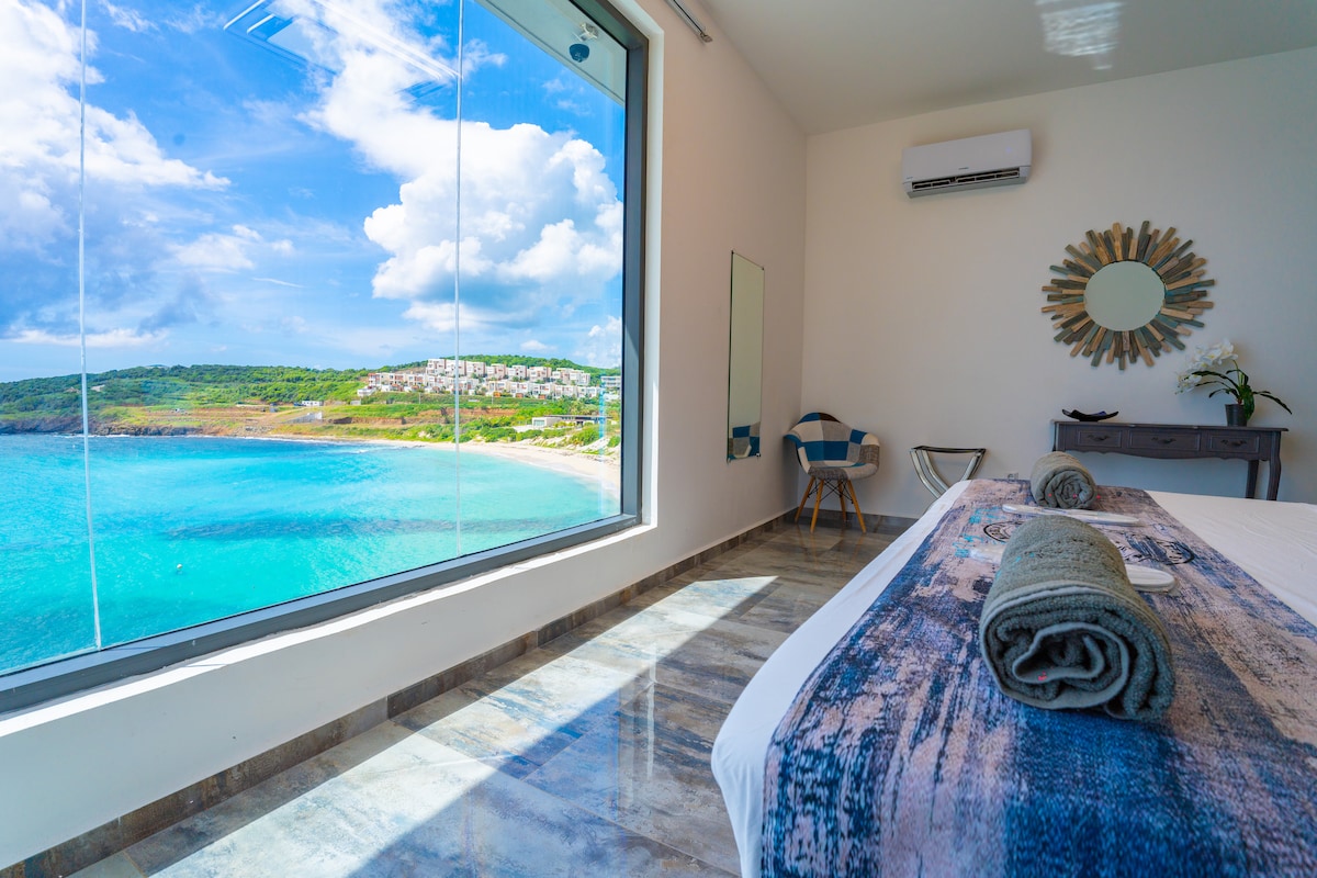 Wake up to the magnificent panoramic view of the lagoon on the top floor, rejuvenate your body with a refreshing dip in the private rooftop infinity pool with a coffee or tropical drink. Take a 10 mins stroll to the famous Mullet bay Beach and grab a few freshly French croissants by the Square. After sunset, enjoy the plentiful neighborhood bars and restaurants or take 5 mins drive to Maho where you will find a vast variety of restaurants, casino and clubs or Porto Cupecoy for romance spot.