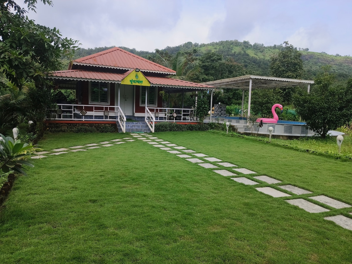Welcome to Saanj 🌅, a serene farmhouse retreat nestled in the lush hills of Girivan, near Pune. Surrounded by greenery 🌿, cool breezes, and tranquil sounds of nature 🎶, Saanj is the perfect escape from the city’s hustle. Whether you’re here for a family vacation, a friends’ getaway , or a quiet work-from-nature retreat, our farmhouse offers the comfort of modern amenities blended with rustic charm. ✨