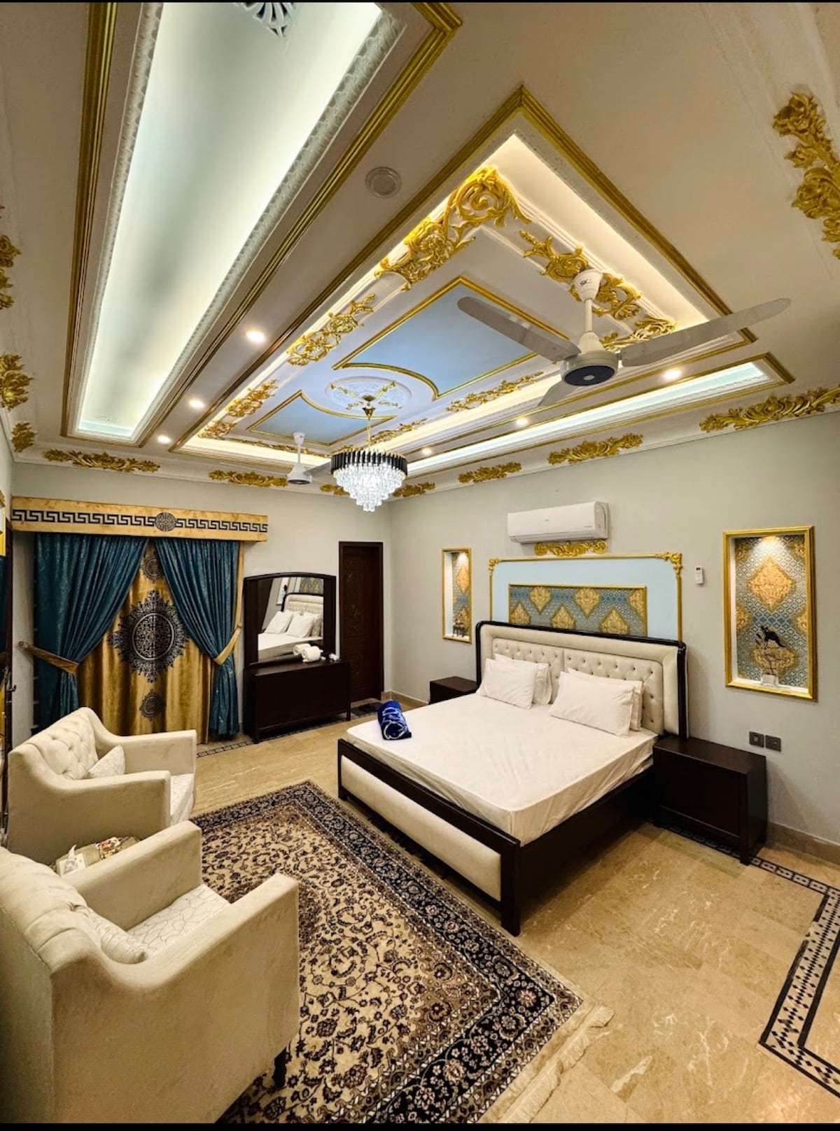 Floating bed, starlit ceiling & elevator access — Multan’s most aesthetic 1-bed stay. Escape Aura – Luxury Stay in Buch Villas, Multan Experience Multan’s first aesthetic apartment with a starlit ceiling, floating bed, and elegant dark-light theme. Enjoy full privacy with self check-in & check-out. Located in Buch Villas, just steps away from Imtiaz Mega Mart, Universal Cinema, and Buch International Hospital. Family & verified guests only. No unmarried couples / no parties.
