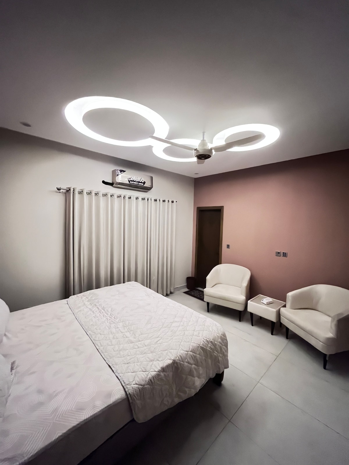 Experience a unique moon-themed luxury stay in the heart of Buch Villas, Multan. Designed for travelers, and staycation lovers who want comfort with aesthetics, this apartment offers a modern interiors, and complete privacy. Whether you’re visiting for leisure, a romantic getaway, or a peaceful night stay this place is made to feel special