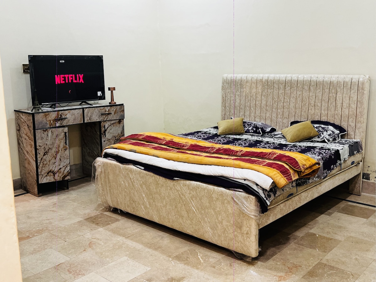 Price displayed for entire independent 4 bed 2 kanal Villa .Get special separate rates for monthly stay upon inquiry. Very spacious villa type property well maintained lawn and kitchen where you can cook. Backup energy and high speed internet available 24/7 . Situated near airport. Looking forward to the best of your experiences with this one of a kind property.