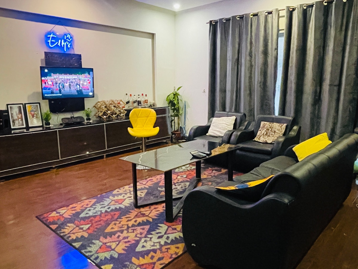 If you are looking for a luxurious stay in the heart of Islamabad closest to nature this is the place for you. Situated at a Scenic Rooftop location of a luxurious residential Smart Home with Alexa where all lights/fans can be turned ON/OFF through voice commands. Fully private space with private entrance including a Huge Terrace, Kitchen, Bath, Living Room, 55" Smart TV, Heat & Cool AC, WiFi, Netflix, XBOX-360 Video Games. Breakfast, Jacuzzi (in summers) & Suana is available at extra cost.