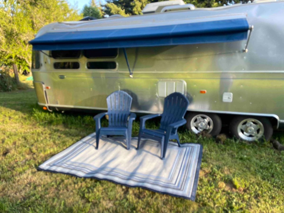 Welcome to your serene Airstream retreat designed to provide you with a peaceful and scenic escape at the gateway to the Columbia River Gorge. This location is perfect for exploring the Gorge waterfalls while being just 15 minutes from the city and PDX, and just minutes from McMenamin’s Edgefield. The airstream sits on the back half of our 3 acres in a park-like setting, surrounded by a field of Douglas Firs and fruit trees.