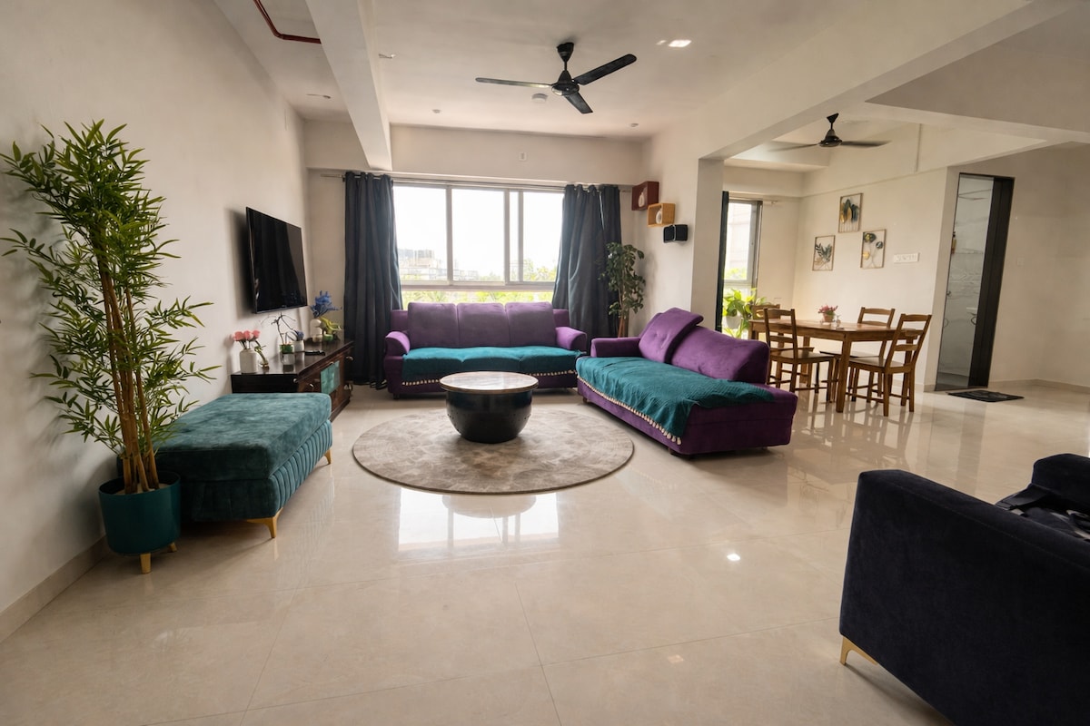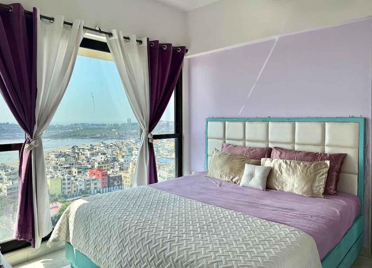Soak up in the unreal sunset moments🌅 Bright, Airy & Modern! Blissville is everything Aesthetic✨ The decor of entire Space is Tasteful in Aqua theme which complements the Sea view 🩵 This 2bhk is our Home laboured with love and We invite you here to indulge in soulful moments with ur loved ones 💜 Enjoy Stunning Views of the entire City & the endless sublime ocean from every nook! Perfect for Long term stays, Staycation, Work-cation, Solo Travellers, Tourists & those who seek Luxe Leisure🌟