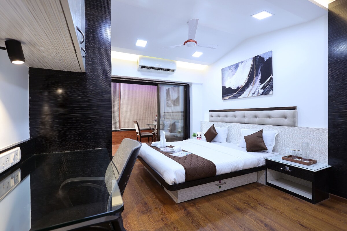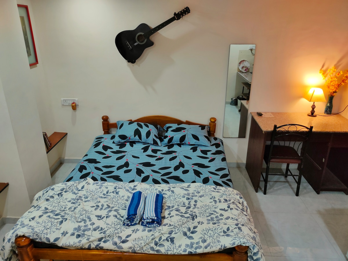 This unique space radiates luxury in Mumbai’s renowned national park reserve that preserves much of the city’s flora & fauna. Its a 3-storey bungalow in which 2 floors are available to guests. Surrounded by nature yet accessible to the city, (a minute away from the western express highway/public transport), it is the perfect place for a comfortable, relaxing stay close to Mumbai's action. The apartment offers spacious living with private bathrooms, hot water, queen-sized beds & air conditioning.