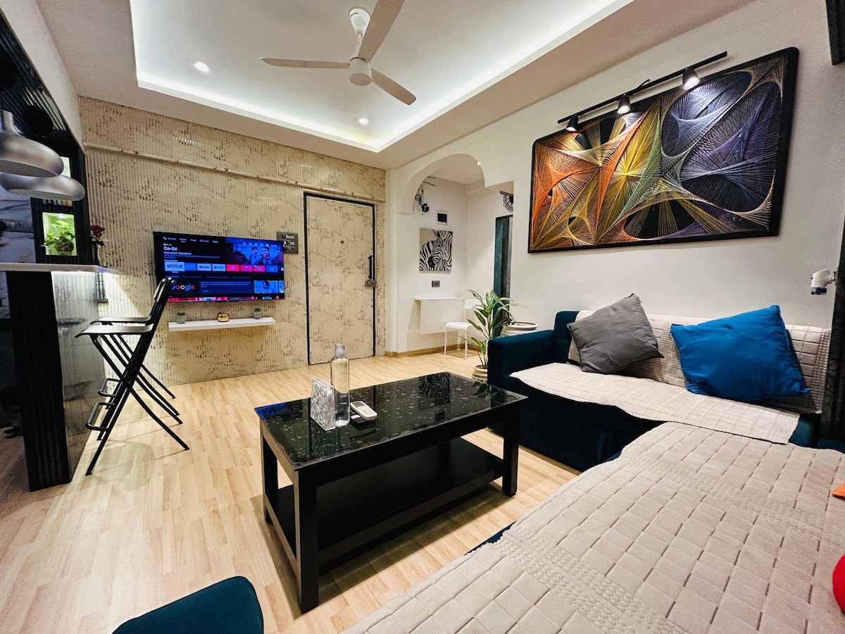 Soak up in the unreal sunset moments🌅 Bright, Airy & Modern! Blissville is everything Aesthetic✨ The decor of entire Space is Tasteful in Aqua theme which complements the Sea view 🩵 This 2bhk is our Home laboured with love and We invite you here to indulge in soulful moments with ur loved ones 💜 Enjoy Stunning Views of the entire City & the endless sublime ocean from every nook! Perfect for Long term stays, Staycation, Work-cation, Solo Travellers, Tourists & those who seek Luxe Leisure🌟