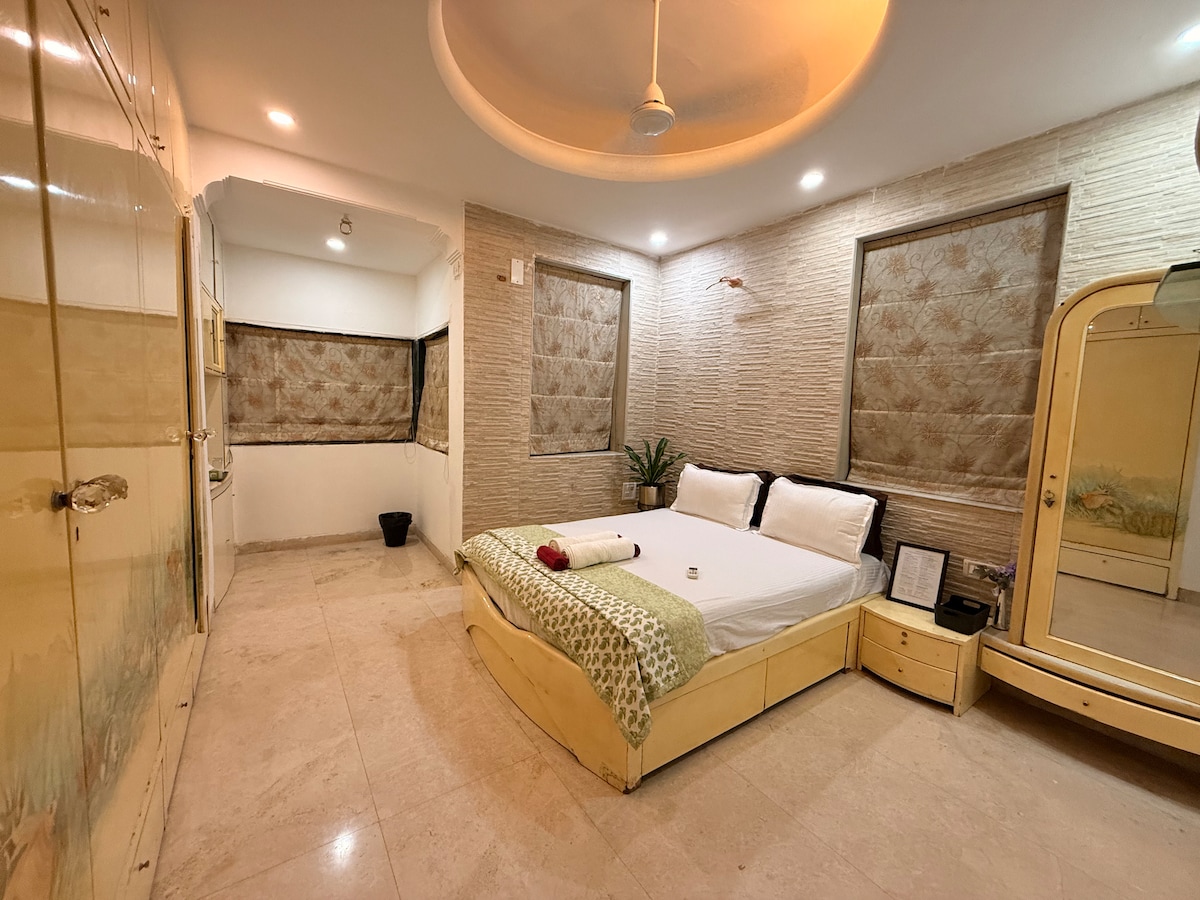Wake up to rhapsody of chirping birds, gentle sea breeze & magnificent sunrise surrounded by lush greenery. Silver BEACH -5 min Walk Aksa BEACH-15 min drive Smart TVs , AC, Wi-Fi ,a Bath tub. Spend cozy afternoons in the balcony with a book and a cup of coffee ,amidst greenery . Stroll on the beach , Explore beautiful landscaped gardens , Pool & Quaint cafe of the luxury apartment complex , Set in peaceful & tropical neighbourhood of Madh Island Zomato Swiggy & Blinkit delivers