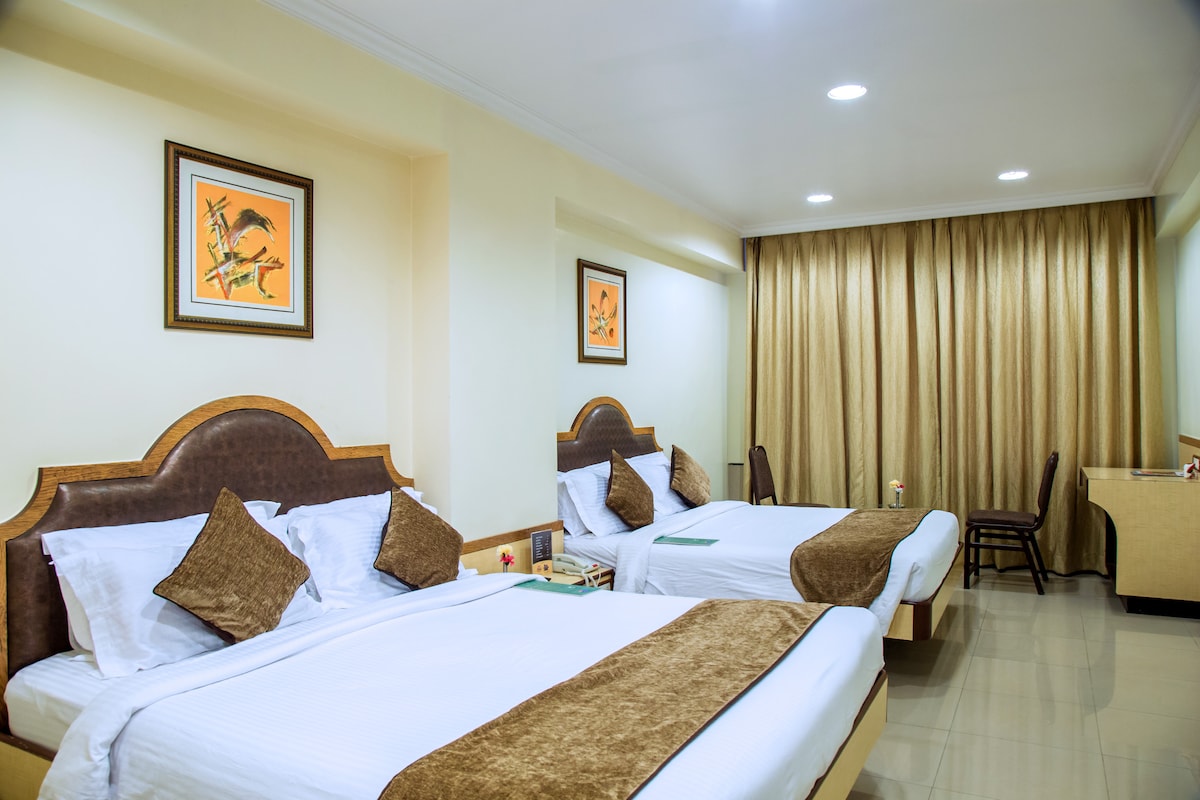 Wake up by the waves in this cozy, elegant hotel room near Mumbai’s iconic Shivaji Park. Enjoy free breakfast, fast Wi-Fi, and a short stroll to the beachfront promenade the perfect mix of calm mornings and city convenience in the heart of Dadar.