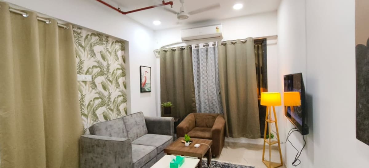 Bohemian Bliss in Kharghar 🛋️ Escape to our serene 2BHK row house🏠, infused with boho vibes🌻, abundant natural light🌞and thoughtfully curated minimalistic decor. Perfect for a stylish getaway, our space features: - Fully equipped kitchen👩🏻🍳 - High-speed internet 🛜 - All essentials for a comfortable stay🛏️ Unbeatable Proximity: - 🏥Tata Hospital (7 mins) - 🛕ISKCON Mandir (6 mins) - 🏟️DY Patil Stadium (15 mins) - 🏫NIFT College (6 mins) - ⛳️Kharghar Valley Golf Course (7 mins)